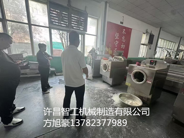 2024年10月15日,河南客户带面粉来厂试机小型电磁炒货机炒制