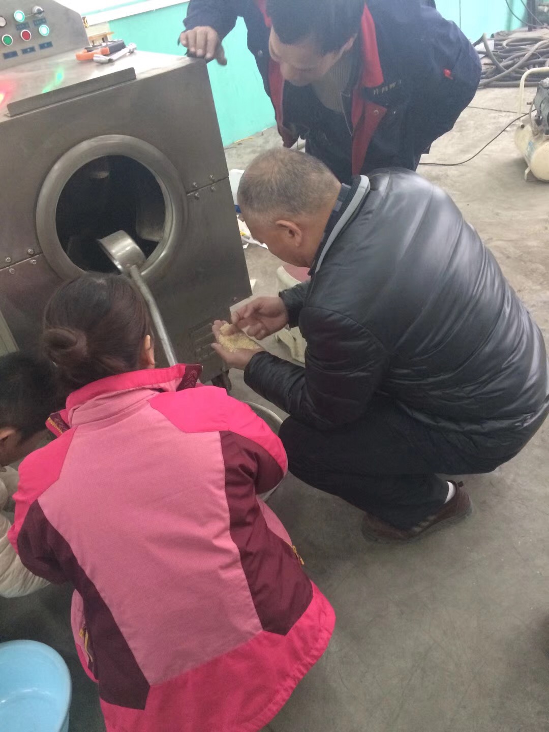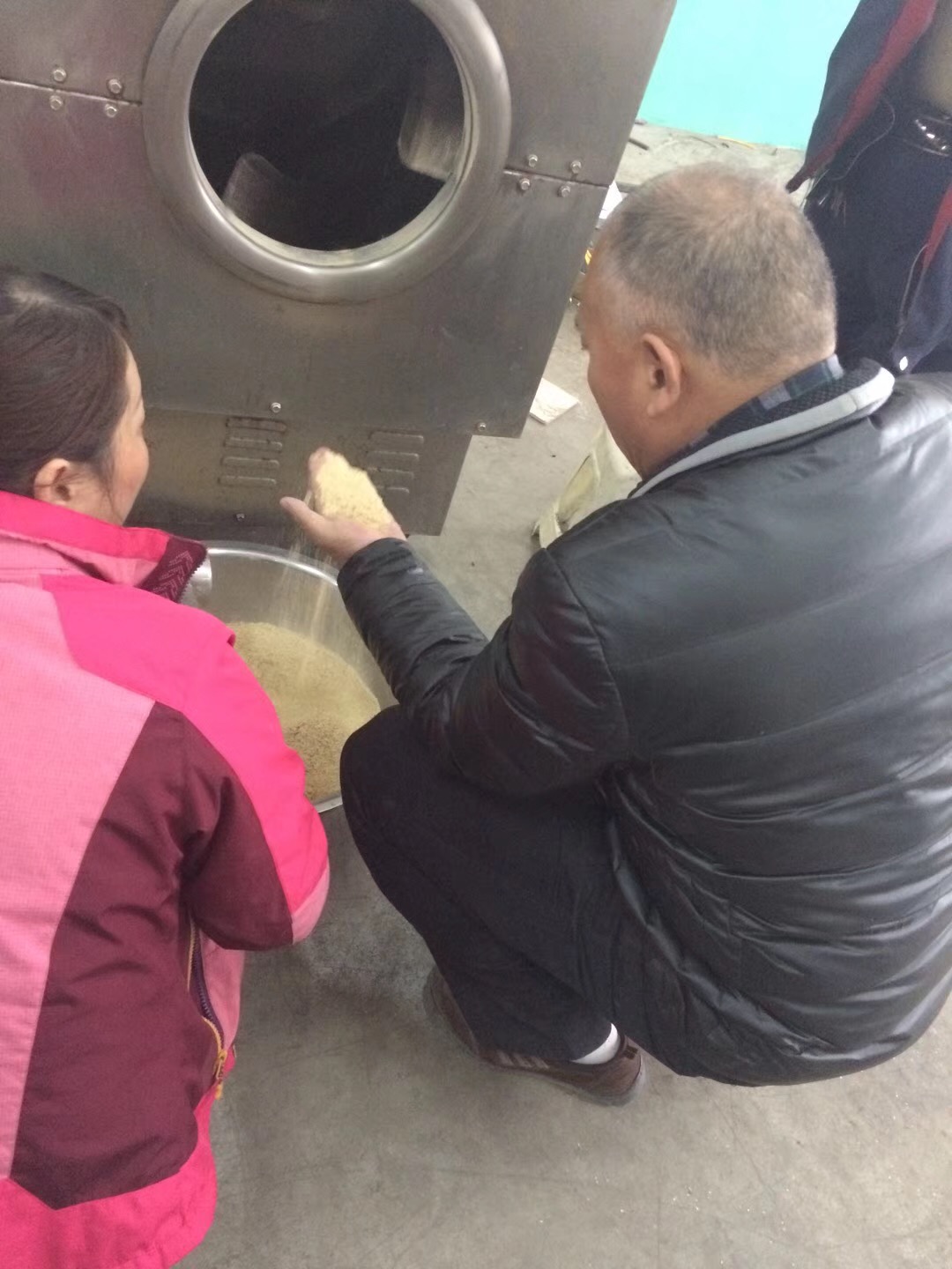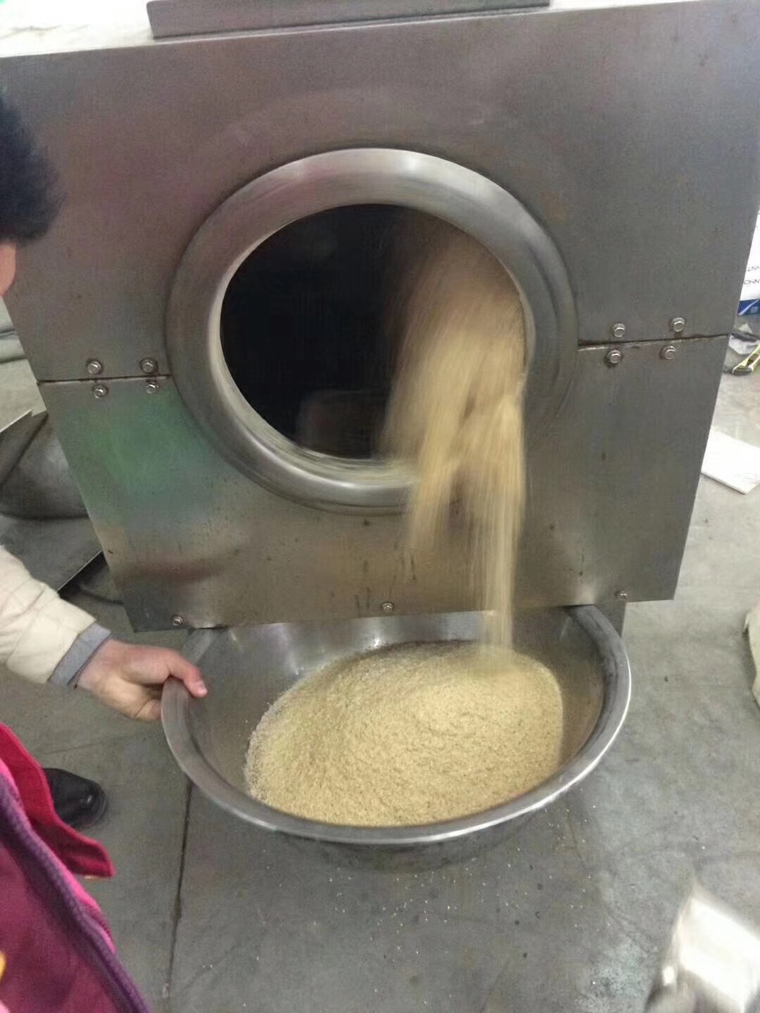 客户来公司试机电磁炒货机炒制小麦皮,炒制效果太好了!