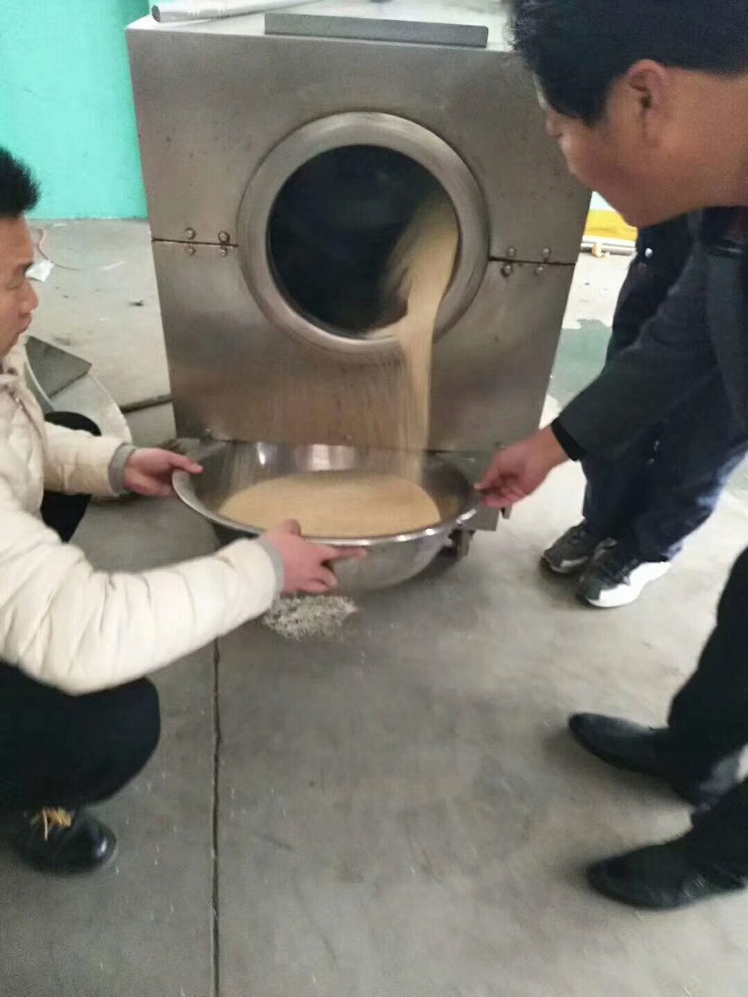 客户来厂试机炒制脱皮芝麻,效果非常满意(附图)
