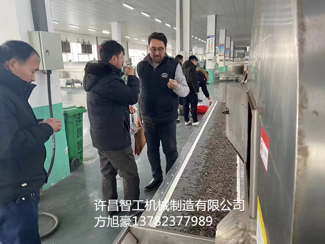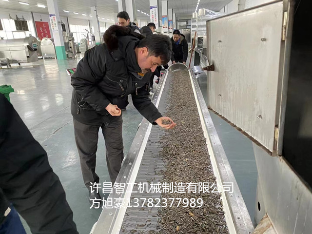 智工炒制师傅现场为伊朗客户开机流水线炒制瓜子,炒制效果客户非常满意。